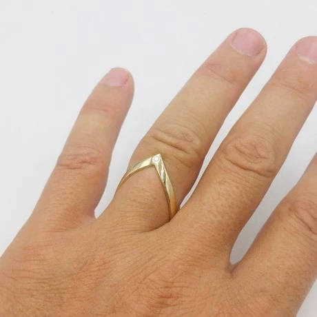Cette bague reprend un design de bague connu en afrique, il s’agit d’un anneau d’or 24 carats ou 18 carats en forme de V répété deux fois, mais qui peut se voir sous 2 angles différents.