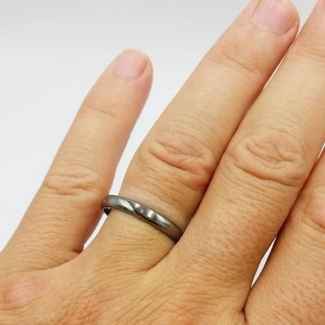 Cette alliance en demi-jonc séduira toute personne désireuse de porter une alliance simple et discrète personnalisable en largeur.