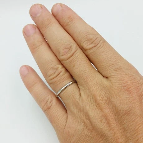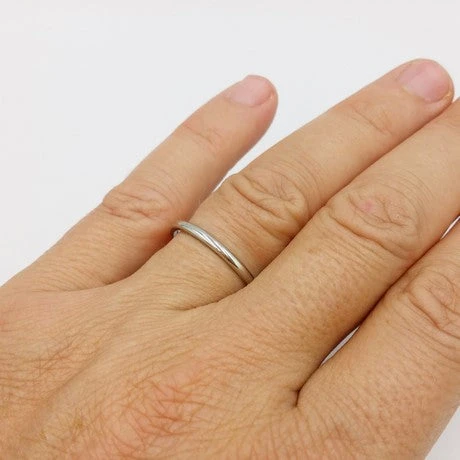 Cette bague de mariage est faite d’un fil rond de 2 millimètres de diamètre en Platine 950 formant un jonc parfait. Vous remarquerez sur les photos la couleur du platine qui se distingue de l’or blanc, aussi bien par sa couleur visible sur les photos de la bague que par sa densitĂ© une fois que vous portez la bague au doigt.