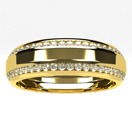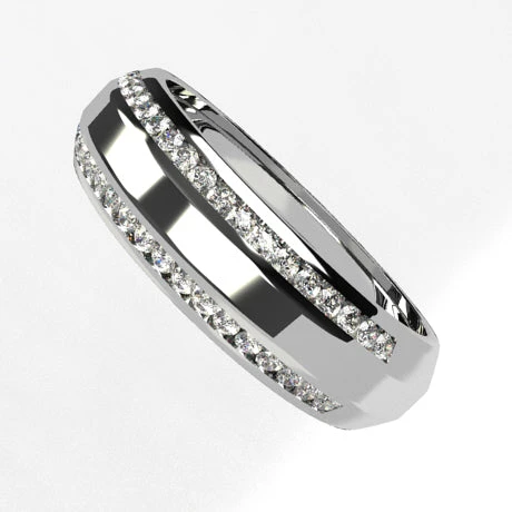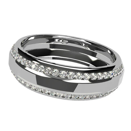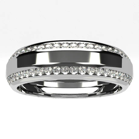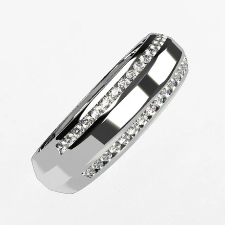Cette bague est faite pour un homme de goût désireux de mettre le prix pour une alliance qui l’accompagnera toute une vie. Il appréciera le style sobre et original associant un sertissage de petits diamants lumineux sur la partie visible de l’anneau lorsqu’il est porté au doigt.