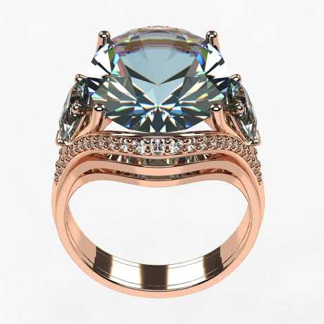 Le corps de bague est volumineux et sertis de petits diamants ronds taillés en brillant, encerclant les aigue-marines de la bague. En tout, ce sont 50 petits diamants brillants qui sont sertis sur la bague, dont les diamètres varient de 1,1 jusqu’à 1,5 millimètre de diamètre. Il y a 32 diamants de 1,1 millimètre, 8 de 1,2 millimètre, 4 de 1,3 millimètre, 4 de 1,4 millimètre et 2 diamants de 1,5 millimètre pour un poids total de 0,3 carat de diamants.