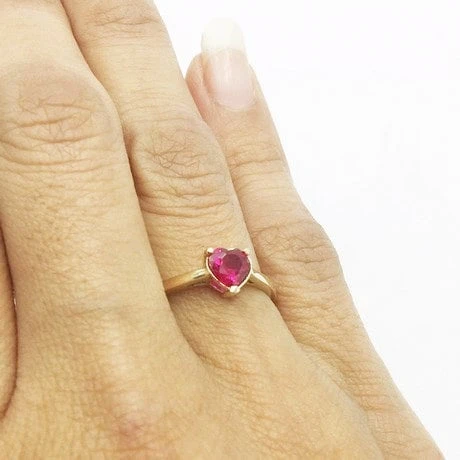 Bague coeur en rubis pour femme.