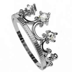 Bague couronne de princesse pour femme en argent massif ou bien or 18 carats.