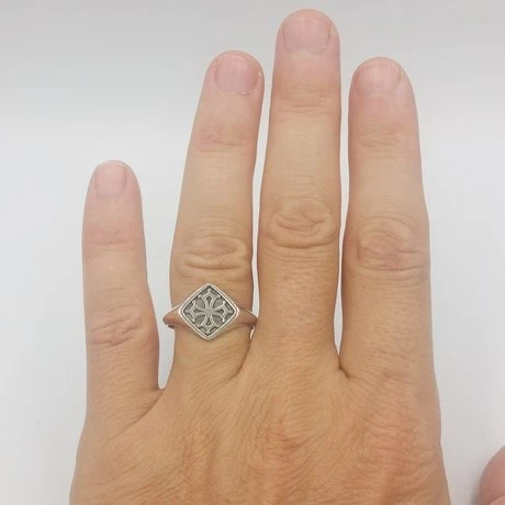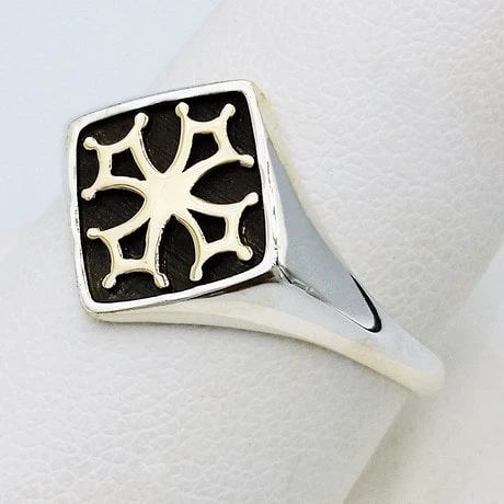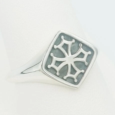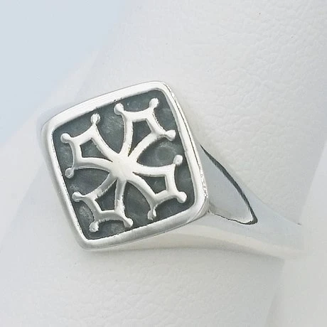 Cette bague de type chevalière présente au centre de son plateau la croix Occitane. Encore appelée croix du languedoc ou croix de Toulouse, elle est le symbole de l’Occitanie depuis plusieurs siècles.