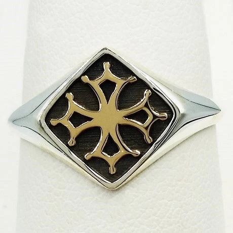 Bague Croix Occitane en argent 925 et or jaune 18 carats.