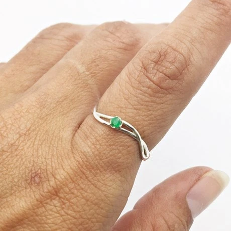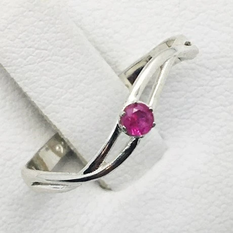 Au centre de la bague est sertie une pierre précieuse de 2,5 millimètres de diamètre.