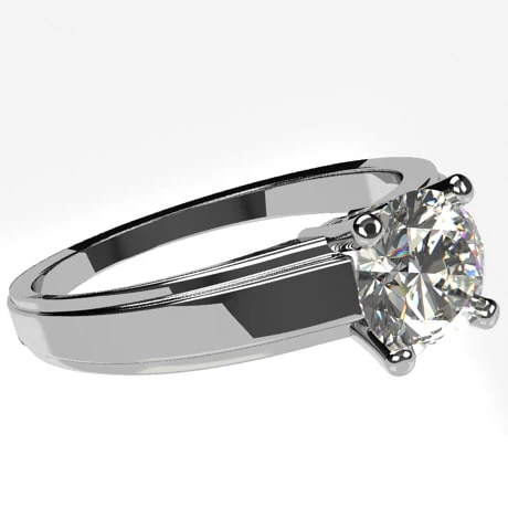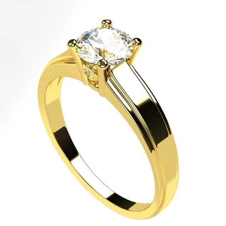 L’anneau est relativement large en partie supérieure, accueillant un diamant solitaire de 5 millimètres de diamètre et de qualité HSI serti de 4 griffes et pesant 0,25 carat.