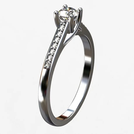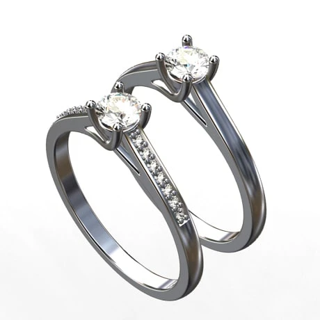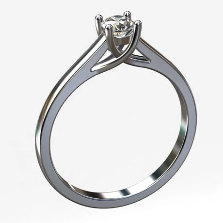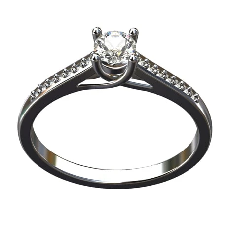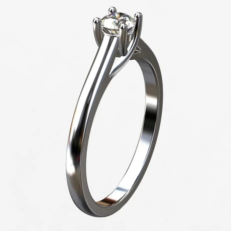 Celui-ci offre un design épuré de section carré arrondi en partie extérieur, il se termine par 4 griffes qui sertissent le diamant principal, laissant un espacement ajouré tout autour permettant de bien apprécier ses reflets lumineux.