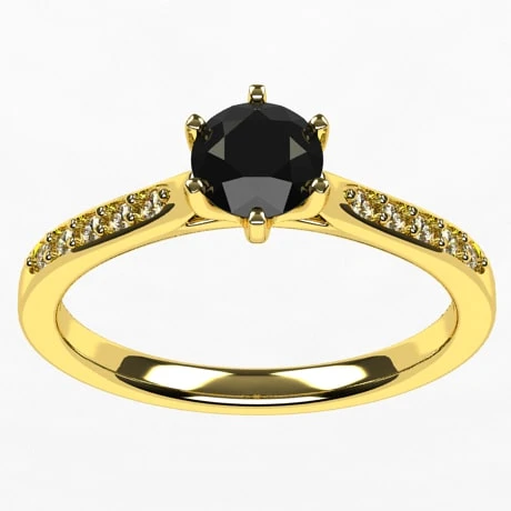 Le diamant noir sertis est une pierre de 5 millimètres de diamètre et pesant 0,6 carat, il est de qualité AAA et hipnotisera votre regard. Les 10 petits diamants blancs de 1,2 millimètre de diamètre sont, quant à eux taillés en brillant et sont de couleur G et de pureté VS2. Le poids total de diamants de la bague est de 0,06 carat.