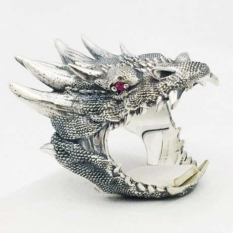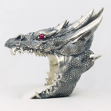 Cette bague unique est faite pour un homme recherchant une bague dragon en argent massif au design atypique qu’il pourra personnaliser avec un rubis rendrant l’aspect du dragon vivant et furieux.