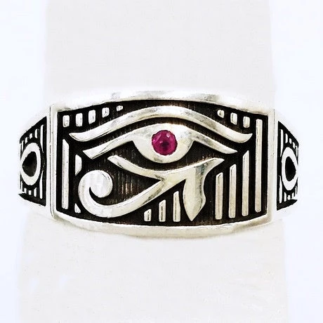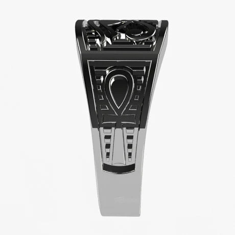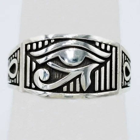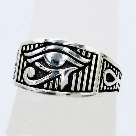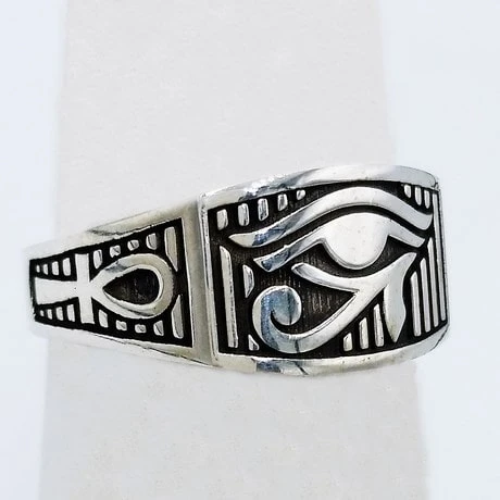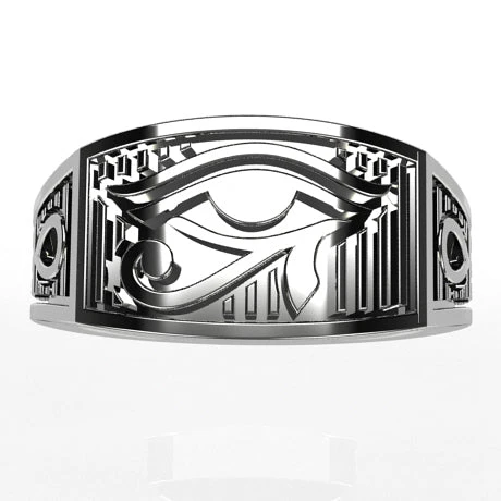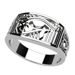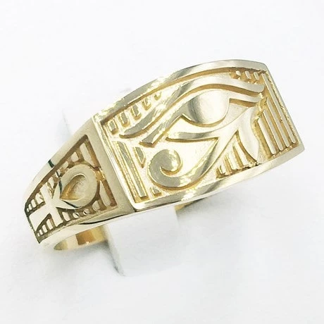 Comme vous le savez certainement, les bagues antiques Égyptiennes étaient ornées de symboles religieux et d’amulettes sensés protéger leur porteur. Sans tenter de reproduire l’une de ces bagues antiques, ce design se veut une réinterprétation moderne des bagues Égyptiennes offrant un anneau plus facile à porter au quotidien, mais lui aussi porteur des symboles les plus représentatifs de la culture des pharaons, à savoir l’oeil d’Horus, présent sur le plateau de bague et la croix de vie, moulée sur les montants.