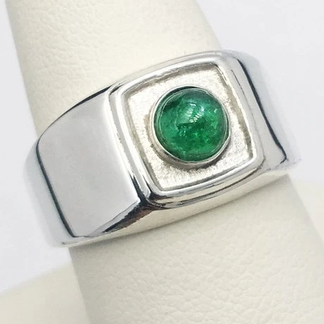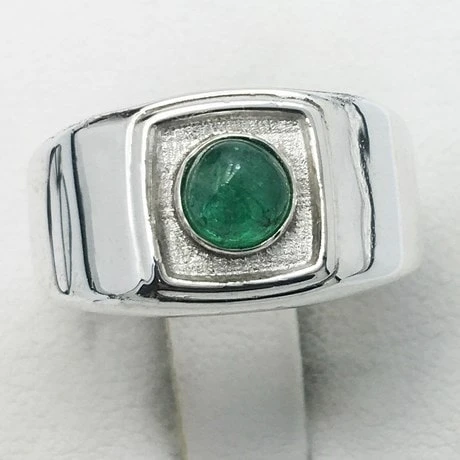 Bague avec pierre d’émeraude en cabochon pour homme.
