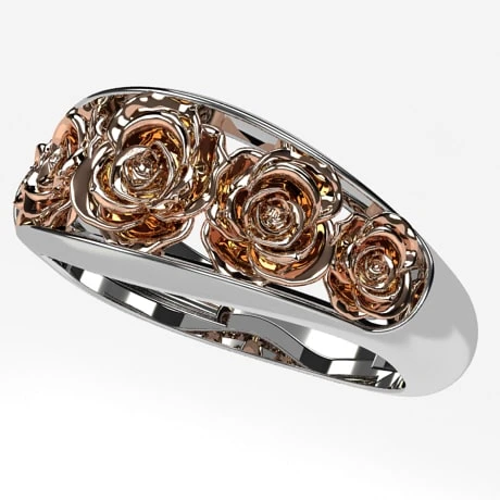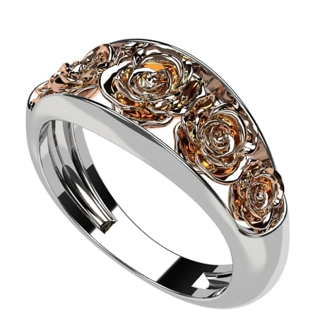 Cette bague au design original est destinée à une femme qui apprécie particulierement les fleurs de rose.