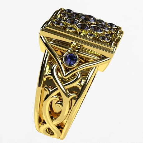Bague large pour homme avec une multitude de pierres de saphir bleus.