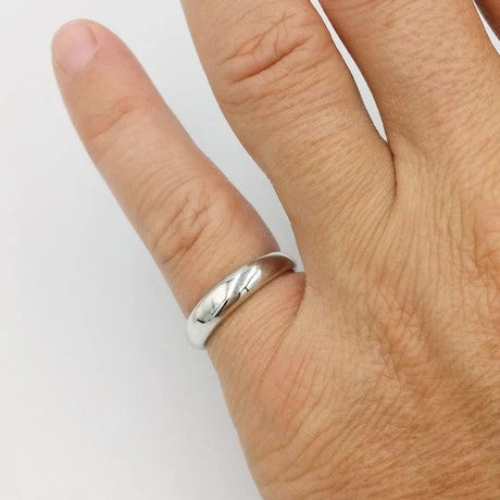 Cette bague reprend le classique design de bague jonc bien connu en bijouterie. Ce design offre une section en demi-jonc de largeur variable entre la partie supérieure et inférieure de la bague.