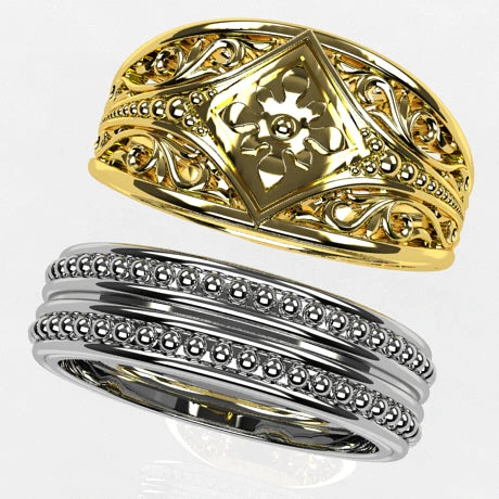Ces deux designs de bague raviront une personne à la recherche d’une bague médiévale de confection récente et fabriquée selon les critères de qualité de la bijouterie moderne. Ces designs sont aussi faciles à porter au quotidien.