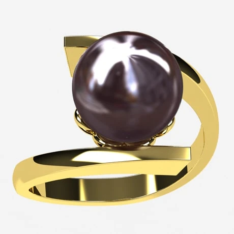 La perle de Tahiti noire repose sur un support fait de fils d’or en forme de pĂ©tale qui est soudĂ© aux deux extrĂ©mitĂ©s de l’anneau ouvert. La perle est montĂ© collĂ©e sur une tige torsadĂ©e en or massif avec de la colle de joaillier spĂ©cifique aux perles.