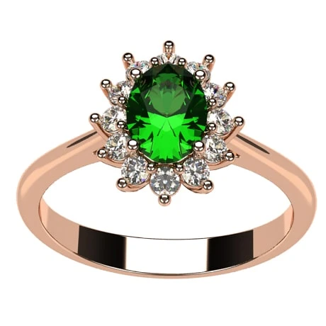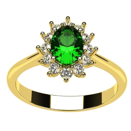 - Bague de fiançailles avec émeraude ovale entouré d’un halo de diamants