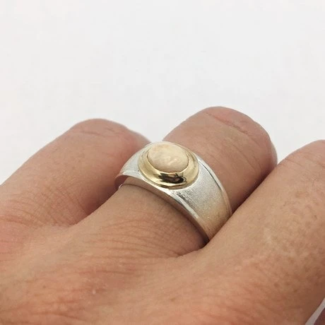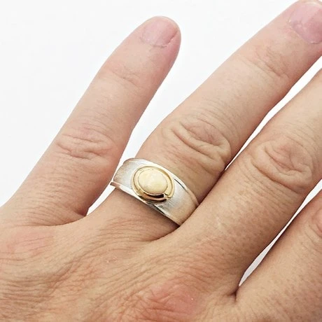 - Argent 925 et Or jaune 18 carats: le corps de bague est en argemt 925 et seul le sertissage de la pierre est en or jaune 18 carats, avec un poids d’or de 0,8 gramme