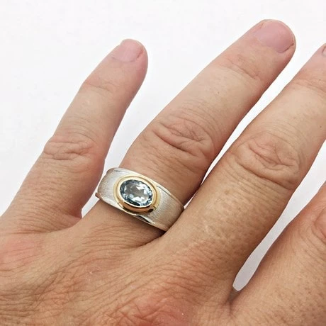 Bague pour homme avec pierre naturelle de couleur en argent 925 et or 18 carats.
