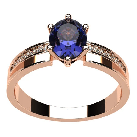 Ce dernier est sertis par 6 griffes lui assurant une très bonne tenue et évitant tout risque de perdre la pierre dans le cas d’une griffe s’accrochant à un vêtement. Chacun des bras de l’anneau est sertis de 7 petits diamants blancs taillés en brillant faisant 1,2 millimètre de diamètre. Ce sont 14 petits diamants en tout qui totalisent un poids de 0.085 carat de diamants.