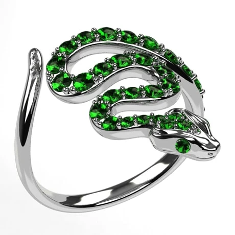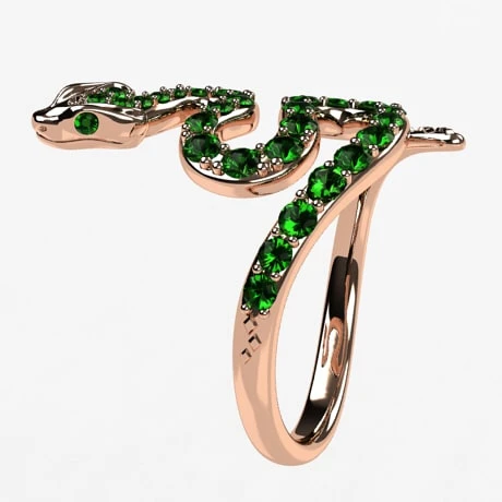 Cette bague est destinée à une femme recherchant une bague serpent détaillée et réaliste qui sera colorée par des pierres d’émeraude naturelles du plus bel effet. Elle pourra facilement associer cette bague émeraude avec d’autres bijoux pavés d’émeraudes.