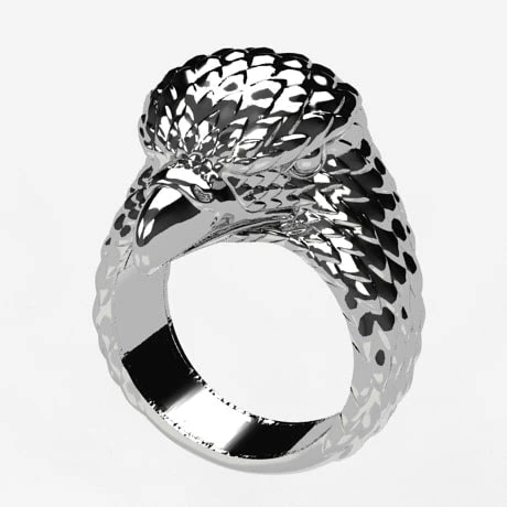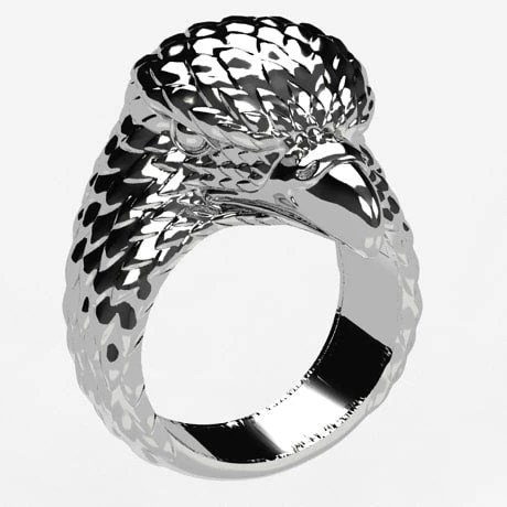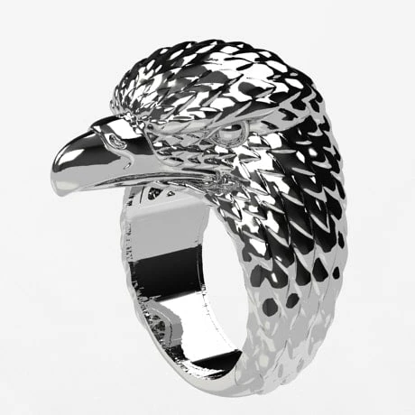 Ce type de finition en argent oxydé poli est du plus bel effet sur la bague en argent. Le réalisme est poussé à l’extrême puisque la bague laisse transparaître le regard dur et froid du rapace réel, lui donnant un semblant de vie.