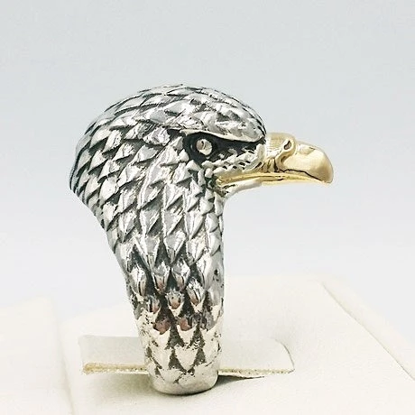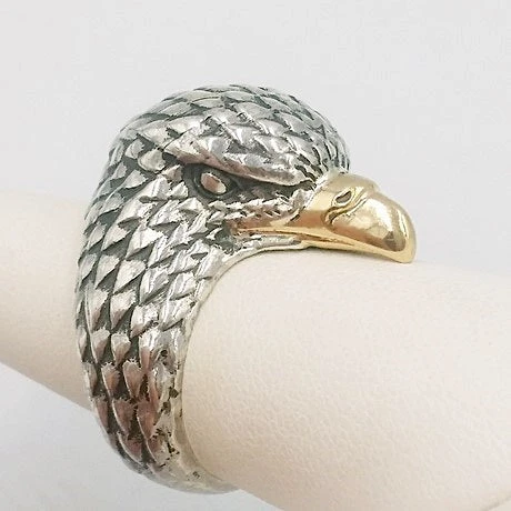Bague tête d’aigle en argent et en or 18 carats.