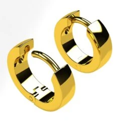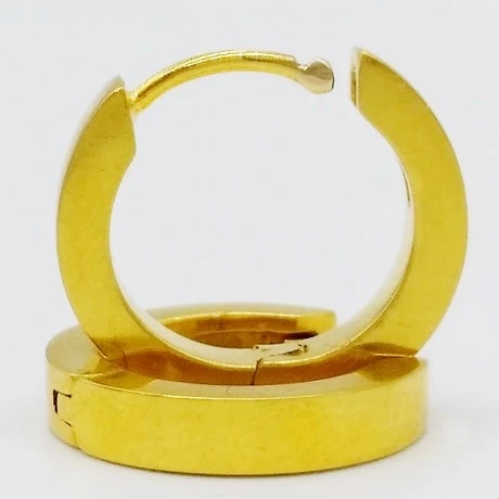 Anneau simple et sobre formant une boucle d’oreille pour homme articulĂ©e de section rectangulaire en or pur. Cette boucle est formĂ©e d’une section rectangulaire faisant 3 millimètres de large par 1,8 millimètre d’Ă©paisseur et non Ă©vidĂ©e afin d’offrir le maximum de rĂ©sistance lorsque vous manipulerez votre boucle d’oreille.