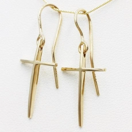 Boucles d’oreilles en forme de croix en or massif.