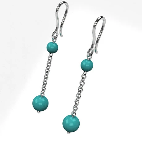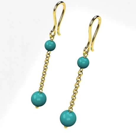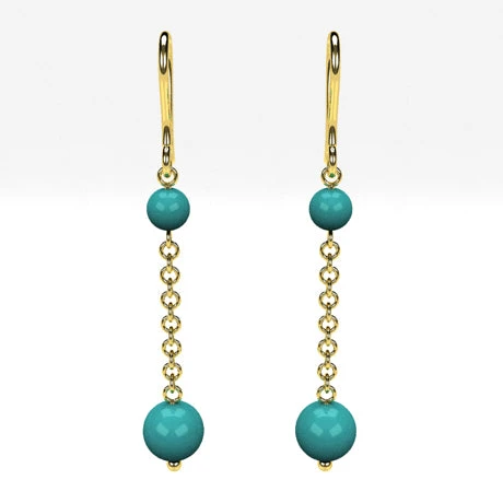 Boucles d’oreilles pendantes avec perles de turquoise vĂ©ritable.