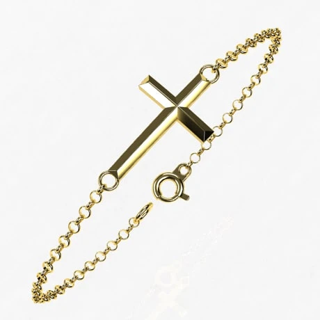 Ce bracelet croix en or est destiné à une femme souhaitant porter un bracelet religieux sobre, discret mais dont on pourra néanmoins apprécier les détails et la finition de l’or poli.