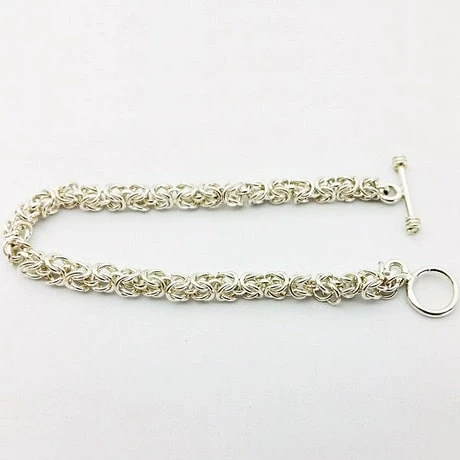 La maille royale/byzantine convient aussi bien pour les hommes que pour les femmes, portée sous forme de bracelets ou colliers. Les femmes auront tendance généralement à porter ce type de maille pour des dimensions inférieures à 6 mm en diamètre alors que les hommes la porteront de 5 millimètres ou plus en diamètre.