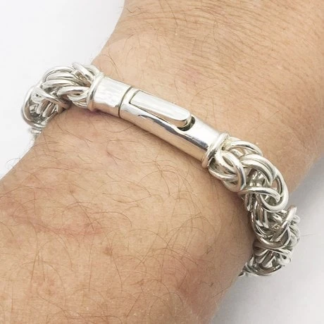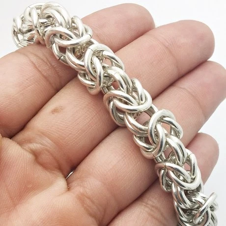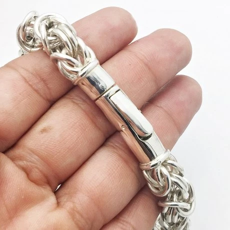 Bracelet chaîne à mailles royales aussi appelée maille byzantine en argent massif.