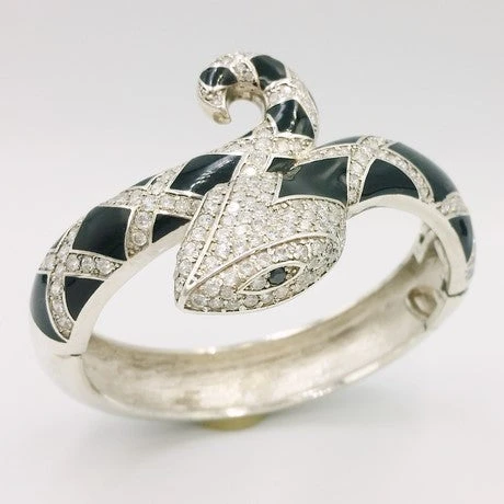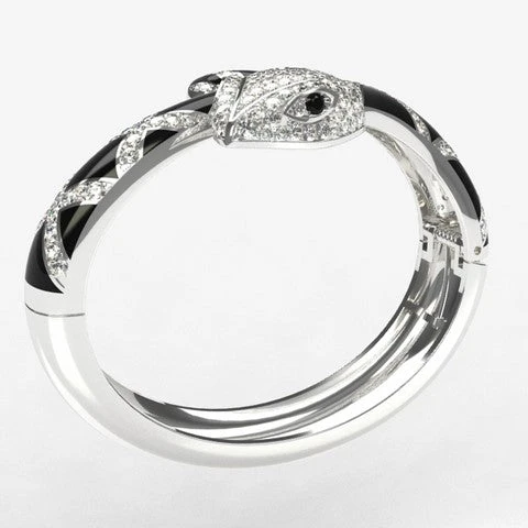 Superbe bracelet serpent en argent massif de type jonc pour femme.