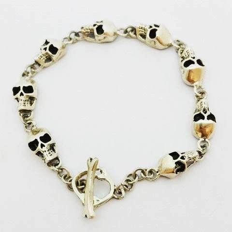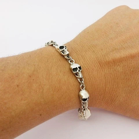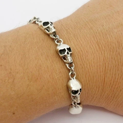 Bracelet têtes de mort en argent massif.
