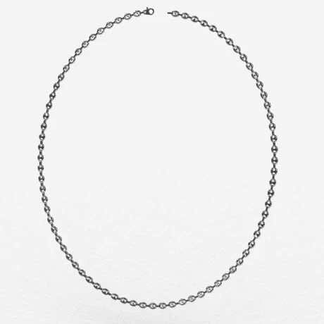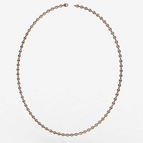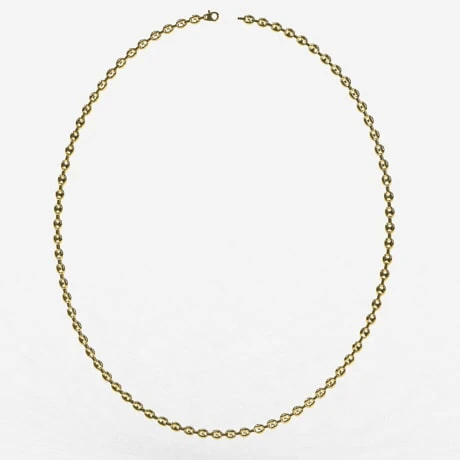 Ce collier est constitué d’une chaîne à mailles grain de café en or massif 750/1000. Comme vous le remarquerez sur les visuels, le design de ces grains présente des reliefs, ils ne sont pas plats et présentent deux larges ouvertures afin de faire passer les maillons d’emmaillement et alléger aussi le poids d’or du bijou.