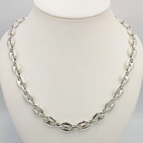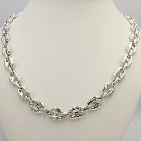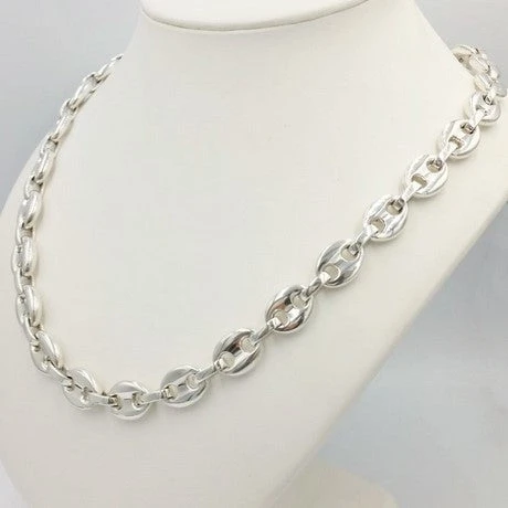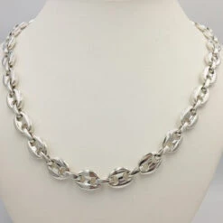 Il s’agit d’une grosse chaine en argent pour homme aux dimensions hors normes, qui en impose par ses dimensions et son poids. Ce collier pour homme est une grosse chaîne faite de maillons en forme de graines de café en argent 925 plein.