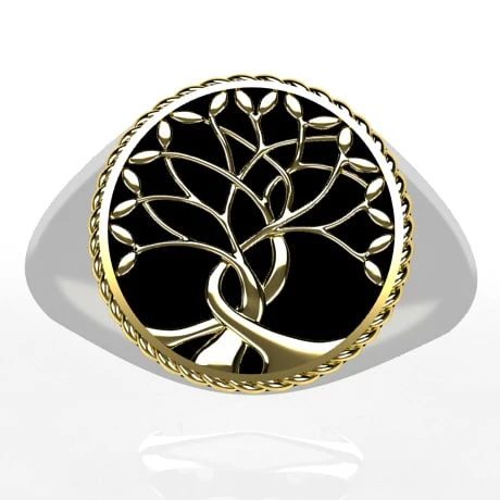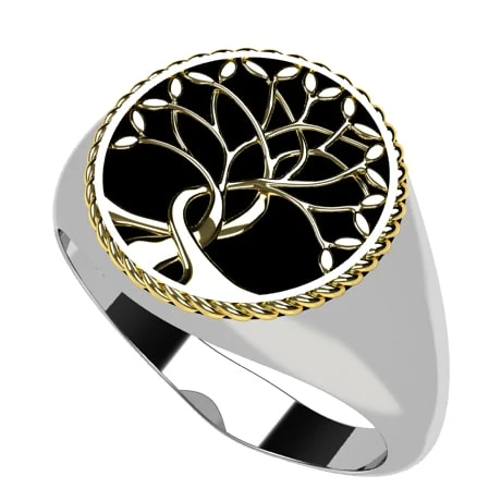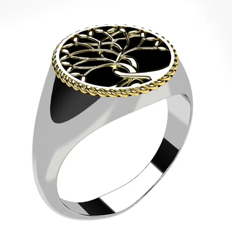 Chevalière arbre de vie en argent 925 et or jaune 18 carats.