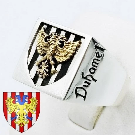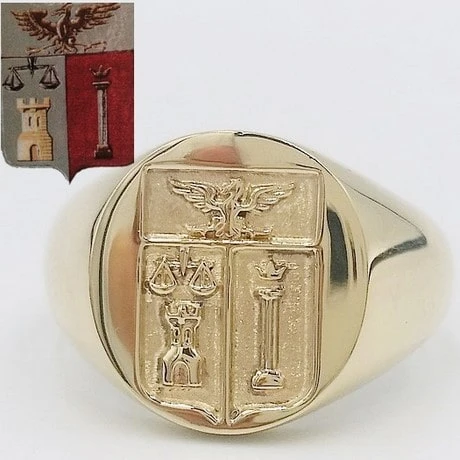 Chevalière héraldique personnalisée par gravure avec les armoiries de votre famille vous donnant une totale liberté de design. Nous vous proposons de créer votre design de chevalière armoriée à partir de votre blason de famille et du style de chevalière originale que vous souhaitez. Cela implique la liberté de choisir: