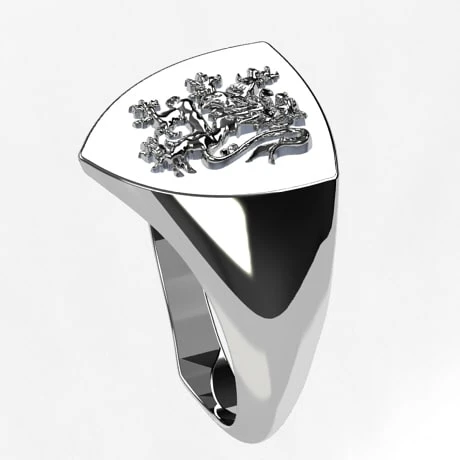 La forme de la chevalière et sa gravure en font un modèle particulièrement original qui ravira les adeptes de l’art héraldique.