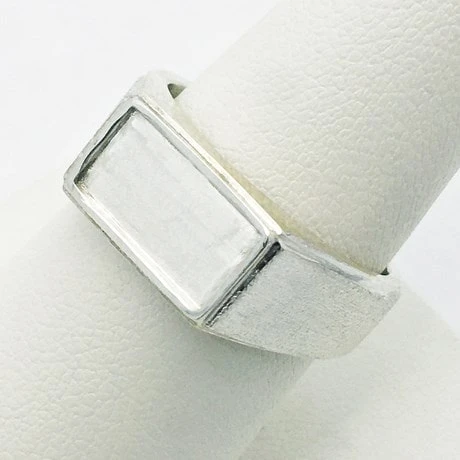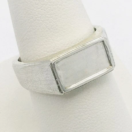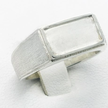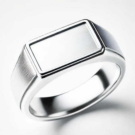 Bague pour homme au design contemporain présentant un design épuré dont le plateau rectangulaire est sobre et lisse, entouré d’une simple bordure qui réhausse la partie centrale de la chevalière. Conçue pour les hommes urbains et raffinés, cette bague se distingue par son plateau rectangulaire de 14×7 mm, offrant une surface plane et épurée qui capte l’essence du design minimaliste.