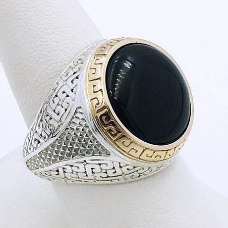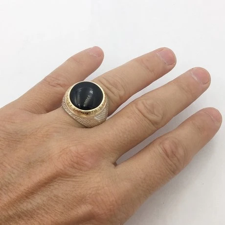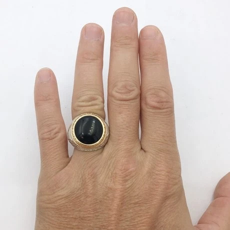 - Chevalière homme avec pierre d’onyx noire naturelle originale