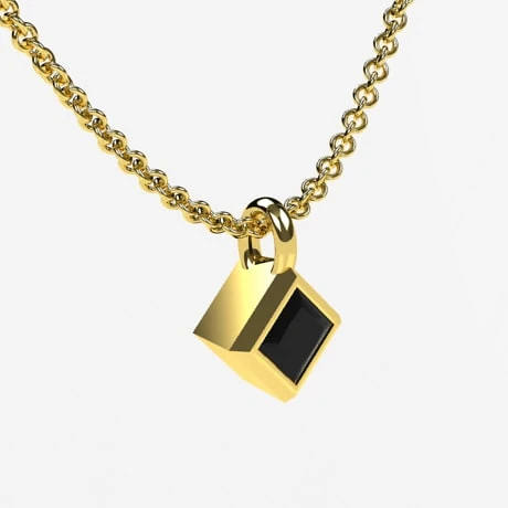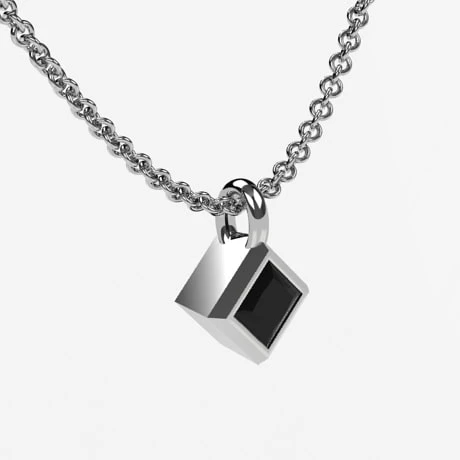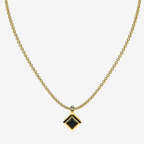 Ce collier se compose d’une chaîne maille gourmette et d’un pendentif sertis d’un diamant noir en taille princesse est un bijou petit et précieux fait pour une femme recherchant un collier discret et facile à porter au quotidien.
