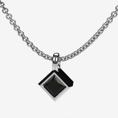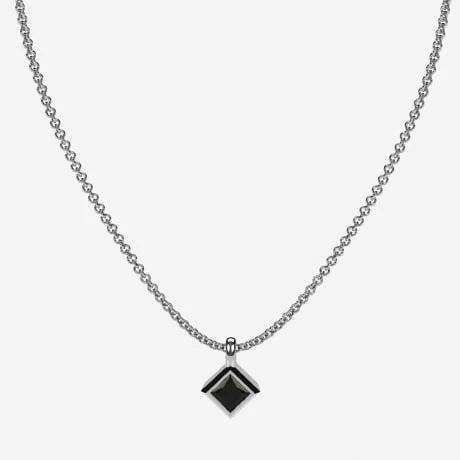 Ce collier original est destiné à une femme recherchant un collier avec diamant noir solitaire au design unique qui soit fin et discret, elle appréciera notamment la disposition en losange du diamant carré lui permettant de paraître plus grand.