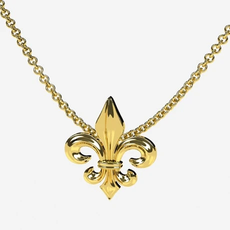 Ce design est très dĂ©taillĂ© et vous permet d’apprĂ©cier les dĂ©tails moulĂ©s en relief de chacun des pĂ©tales de la fleur de Lys. La fleur de lys du collier reprend le design de notre pendentif fleur de lys en or 18k de notre boutique.