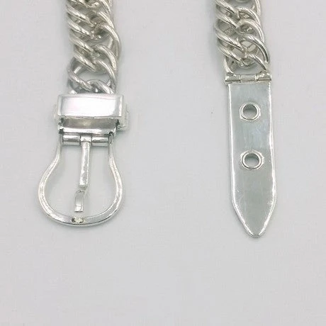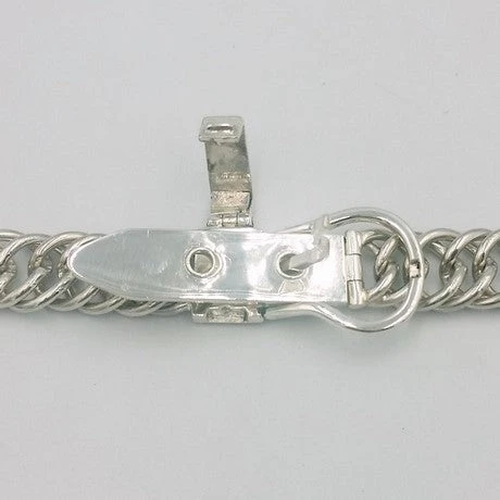 Vous remarquerez le fermoir, particulier ici, qui imite une bougle de ceinture, mais fabriqué tout en argent 925 et permettant de boucler le collier autour de votre cou, le rabat étant ensuite maintenu en place par un fermoir à pression classique.