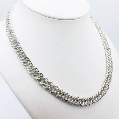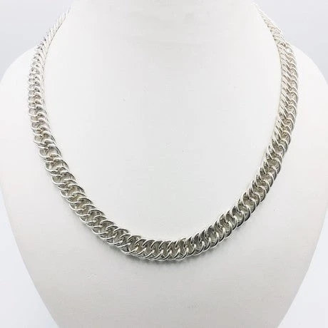 - Collier grosse maille ovale ouverte en argent massif de style masculin