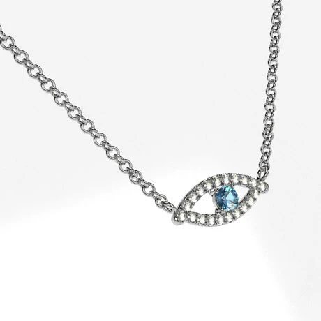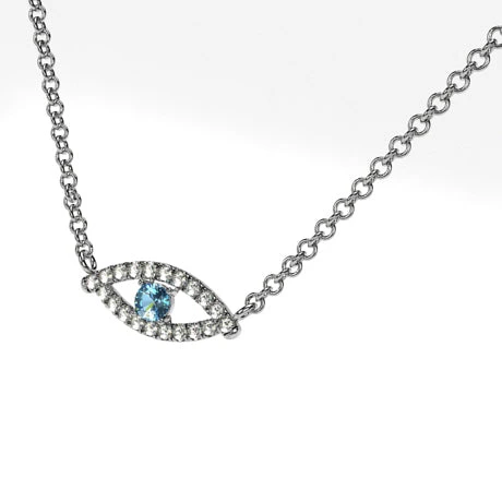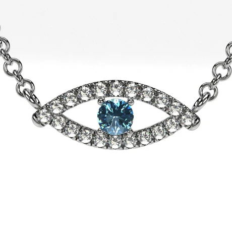 - Argent 925: l’oeil est alors sertis de 20 oxides de zirconium et d’une pierres de topaze bleue naturelle