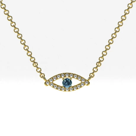 Collier en forme de mauvais oeil en or 18 carats et diamants.